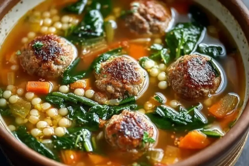 Warm up your evenings with this Italian Wedding Soup featuring tender Parmesan meatballs, fresh greens, and delicate pasta in a savory broth. Comforting, elegant, and ready in under an hour.